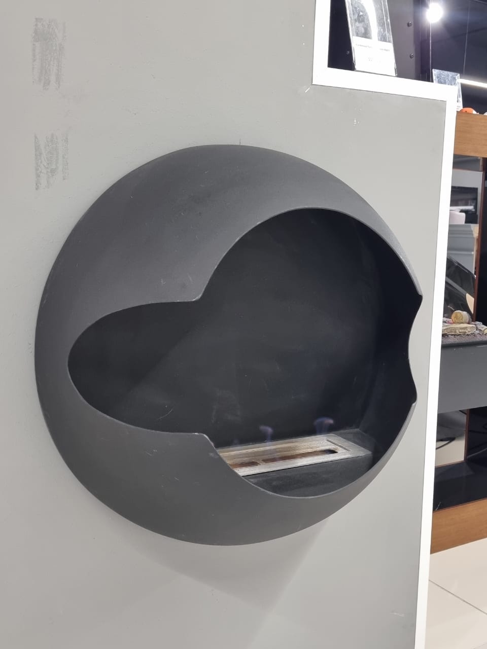 Современный био камин Firezo Apple круглой приплюснутой формы настенного типа для квартиры или дома – находка для интерьера в стиле лофт, хай-тек и других, где приветствуется минимализм и интересные детали.