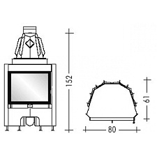 Топка снабжена большим призматическим термостойким стеклом и легким и бесшумным подъемным механизмом, с уравновешивающими противовесами и тросовой системой (или цепной передачей), выдерживающим нагрузку в несколько сотен килограммов, дверца топки открывается вверх и на себя, для удобной чистки стекла.