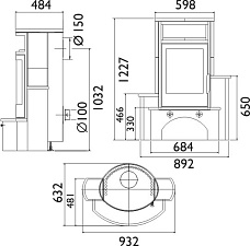 - Диаметр дымохода, (мм) 150