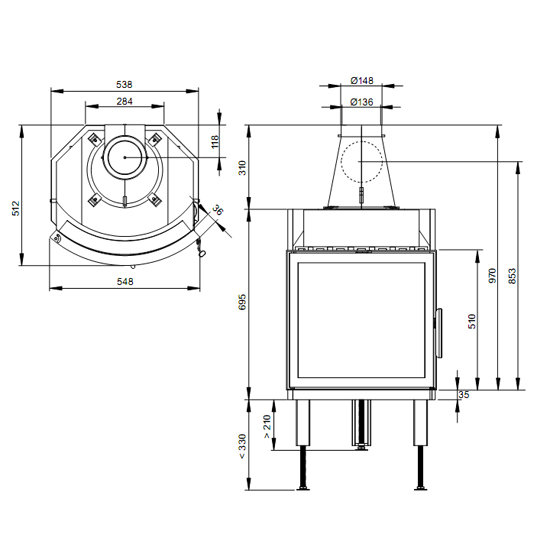 • Диаметр дымохода, (мм)